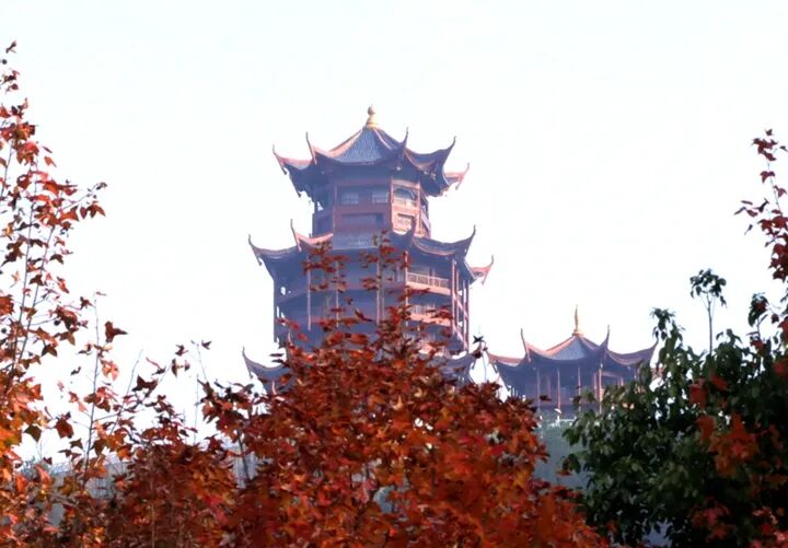 枫叶映楼阁初冬的黔江,在青山绿...