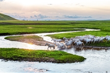 夏季的乌珠穆沁草原空气里弥漫着青草的芳香,就连地上的河水都泛着天空的“蓝色”。沿...